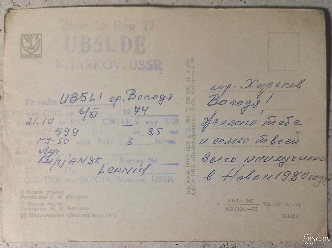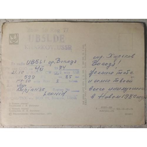 1961-1980Изд-во «Мистецтво»,1975.т. 960 000. Заполнена как QSL-карточка. Следы времени. Состояние хорошее.