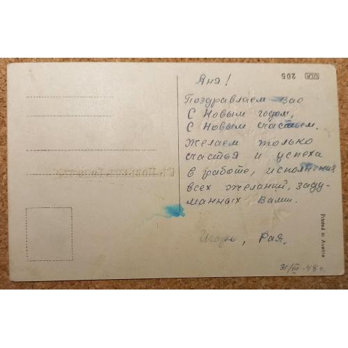 Прислана однополчанкой моей маме, участнице ВОВ. Обе в то время находились в группе советских войск в Австрии. Сложно определить новодел это или нет, но есть предположение, что открытка выпущенная для России с твердым знаком после согласных букв применялась ранее. вплоть до реформы 1918 г. и является не новоделом, а раритетом. Думаю, что в те послевоенные времена служащие Красной Армии коллекционной ценностью открыток не заморачивались. Об австрийском издании, напечатавшем эту открытку можно предположить, что им тоже было не до новодела. Видны следы времени. Состояние хорошее.