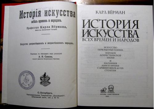 3-х томное подарочное издание на русском языке знаменитой "Истории искусства всех времен и народов" (Лейпциг- Вена,1905- 1911 гг.) Карла Вёрмана - известного искусствоведа и исследователя- путешественника. Существует немного исследований искусства, ставших классикой, и работа профессора Карла Вёрмана, директора Дрезденской галереи - одна из них. Его фундаментальный богато иллюстрированный труд по истории мирового искусства, впервые изданный более ста лет тому назад на немецком языке, за долгое время был переведен более чем на 50 языков и остаётся незаменимым источником знаний для многих интересующихся данной тематикой. Дело в том, что многотомная монография Карла Вёрмана существенно отличается от всех других работ подобного рода. В них обычно рассматривается ход развития главным образом трех важнейших художественных отраслей: архитектуры, скульптуры и живописи, искусству же прикладному уделяется очень мало места или даже совсем не уделяется; последовательные фазы развития искусства