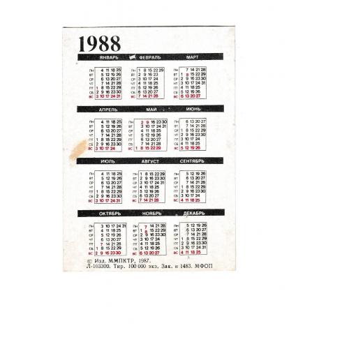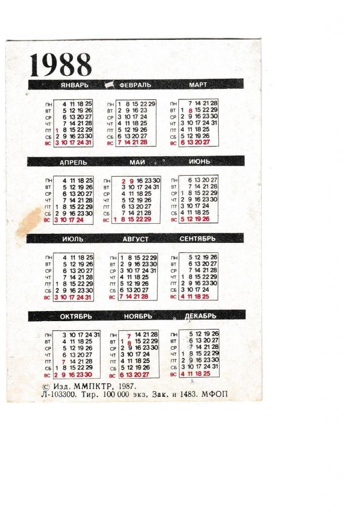 1981-2000Календарик 1988 Роспосылторг, девушка.