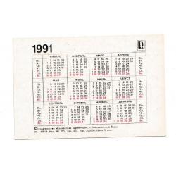 1981-2000Календарик 1991 Мотоцикл Jawa, реклама, девушка, магнитофон.