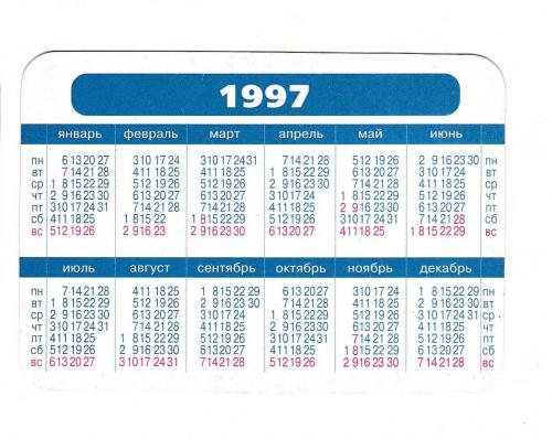 Карманный календарик на 1997 год. Смотрите внимательно на состояние. Все вопросы - до ставок. Смотрите другие мои лоты.