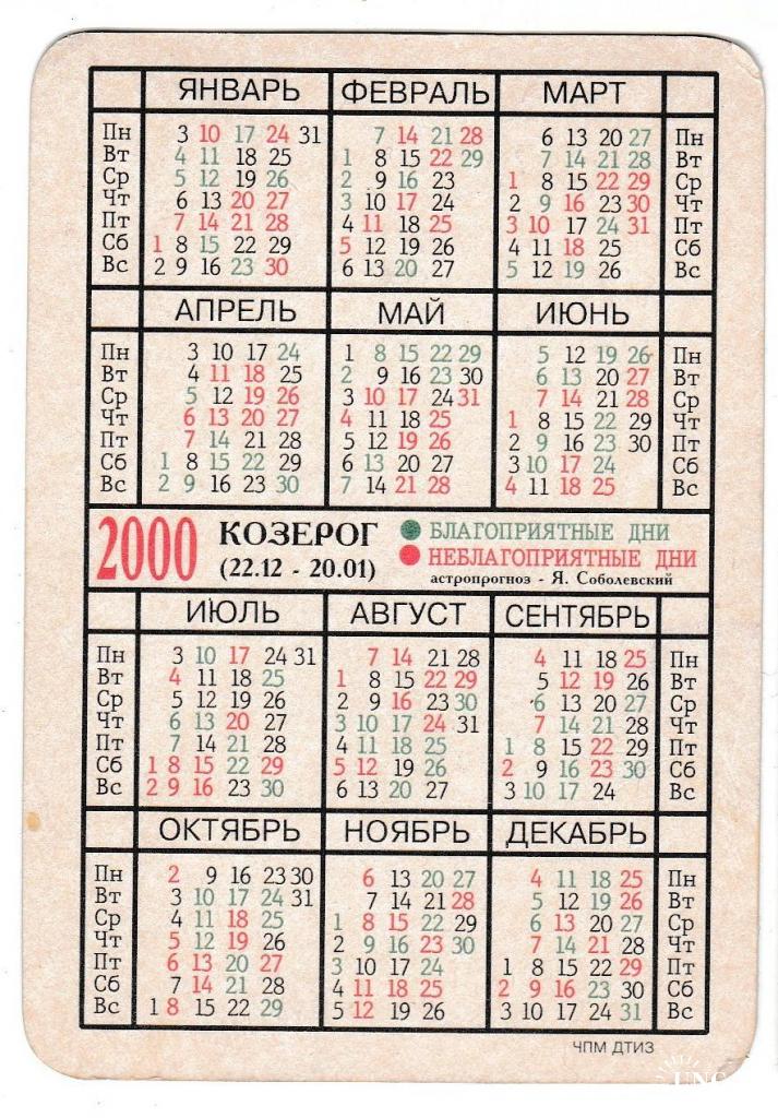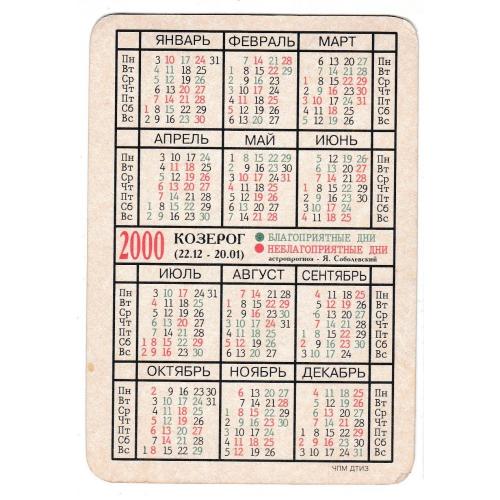 1981-2000Календарик 2000 Гороскоп, Эротика, Козерог.