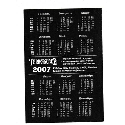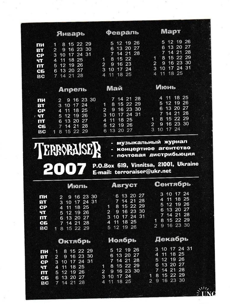 2001-2020Календарик 2007 Vader, Death Metal, Terroraiser.