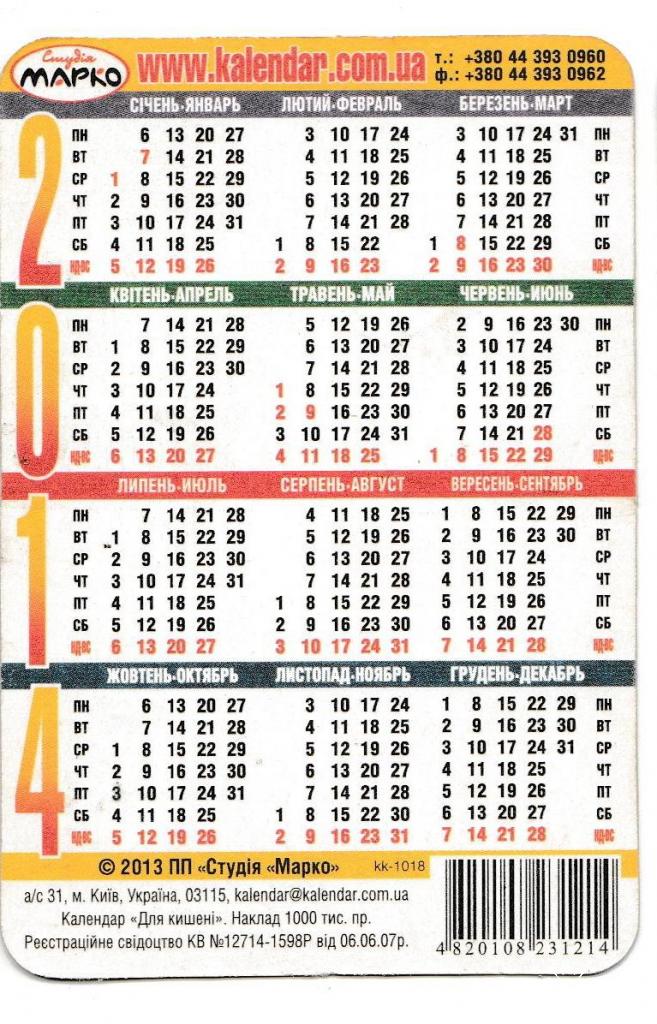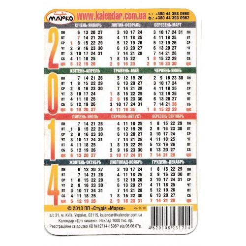 2001-2020Календарик 2014 Авто, літак.