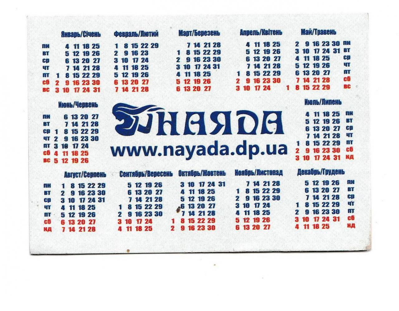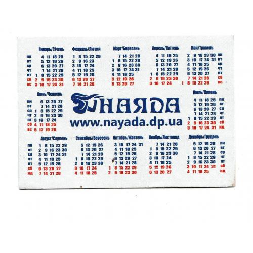 2001-2020Календарик 2016 Вода Наяда, реклама.