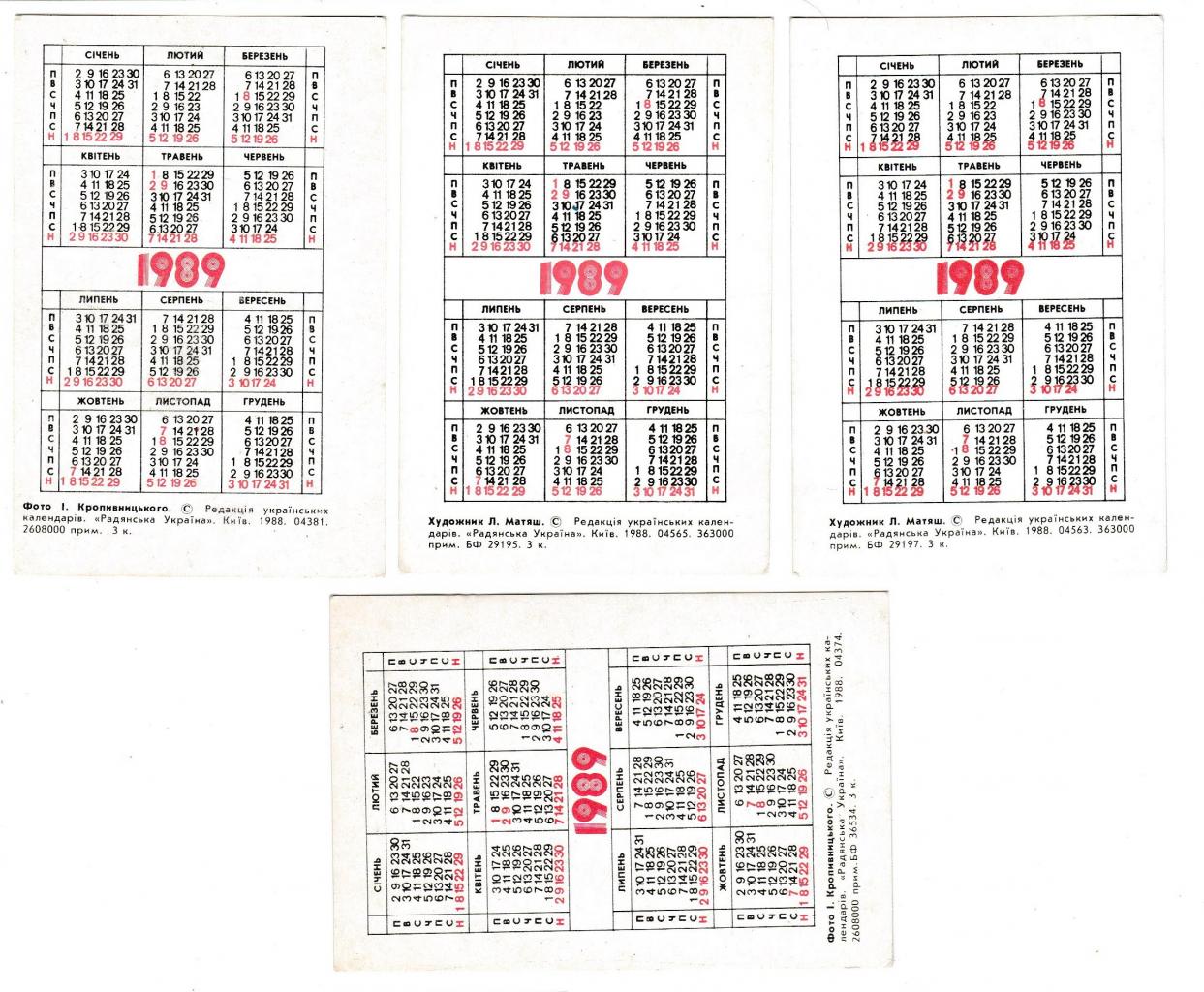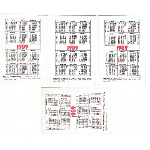 1981-2000Календарики 1989 Корабль, серфинг, космос, дельтаплан.
