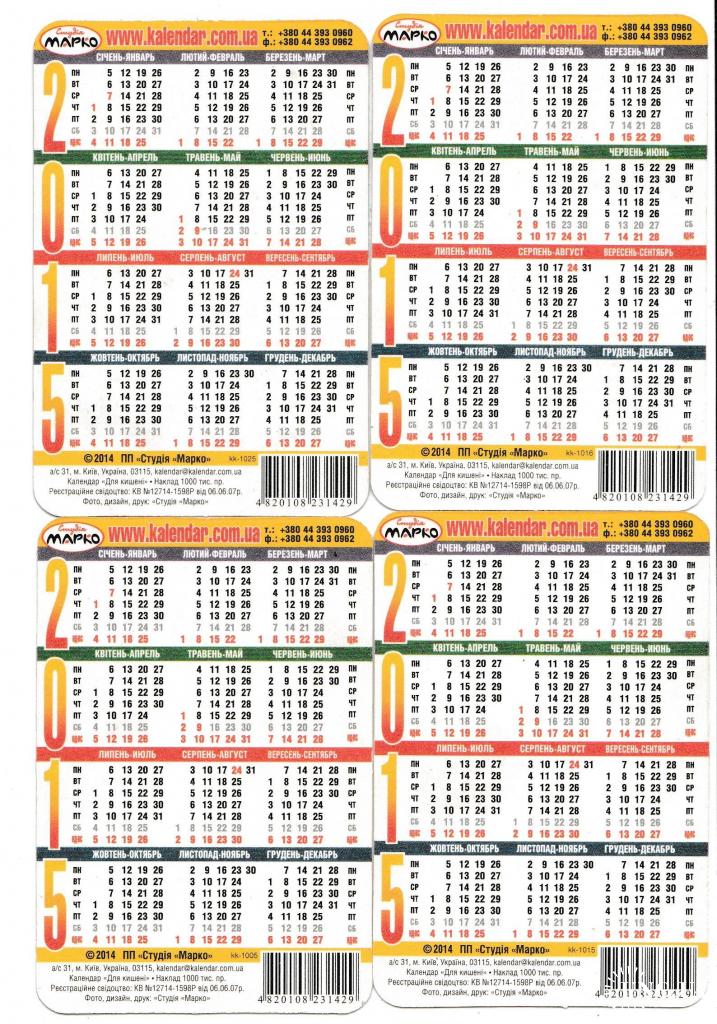 2001-2020Календарики 2015 Авто.