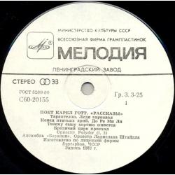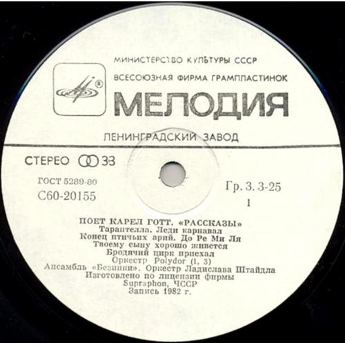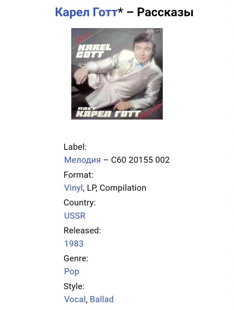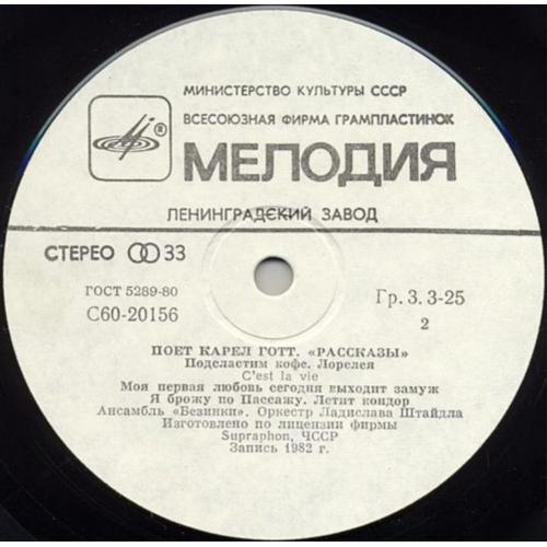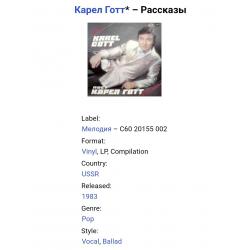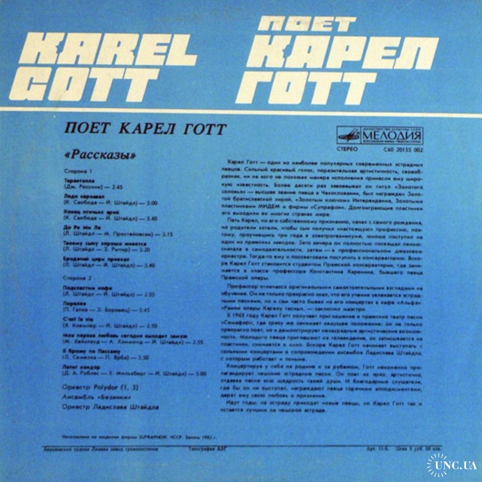 1981-2000Вінілова платівка. Студійний альбом, Чехословацького естрадного поп-виконавця Карела Готта (Stori) 1982. Випуск фірми (Мелодія) СРСР, Ленінградський завод грамплатівок, 1983-ій рік. Платівка нова, неіграна, під голкою не була. Категорія М (Mint). Стан конверту NM-. Відправка по Україні службами доставки: Нова Пошта, Укр Пошта, Делівері. Також відправляємо посилки за кордон по цілому світу.