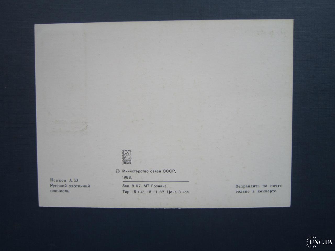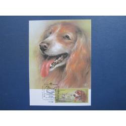 Картмаксимум листівка марка спецгасіння СРСР 1988 фауна собака порода руський мисливський спаниель