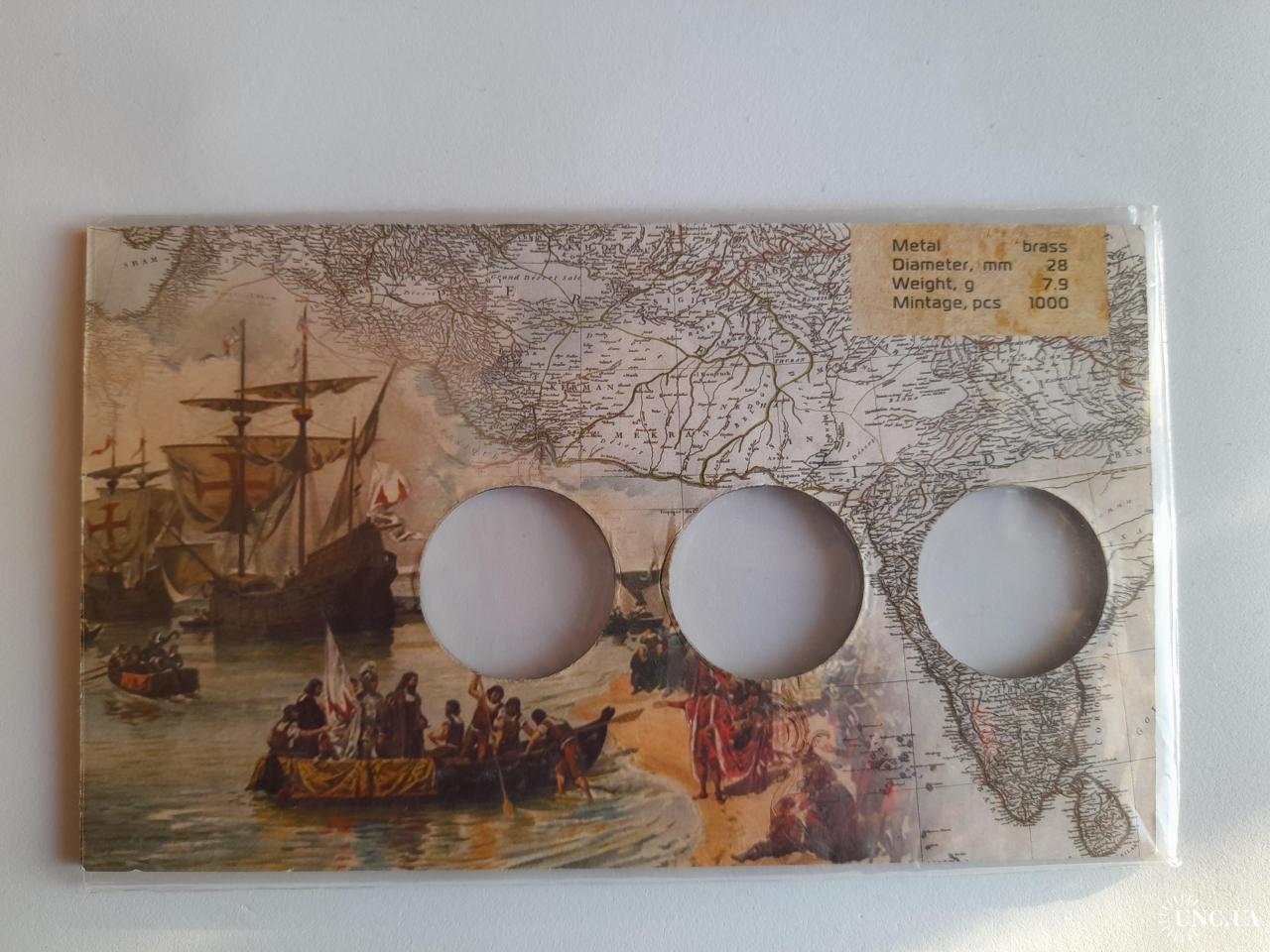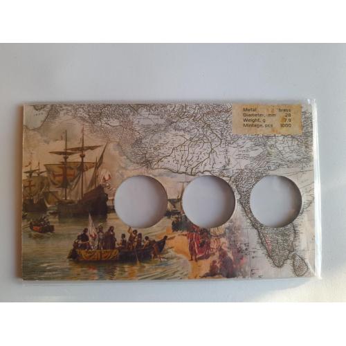 Картон от набора монет Острова Каликут, на 3 монеты,Mactan ,Васко да Гама,БЕЗ МОНЕТ