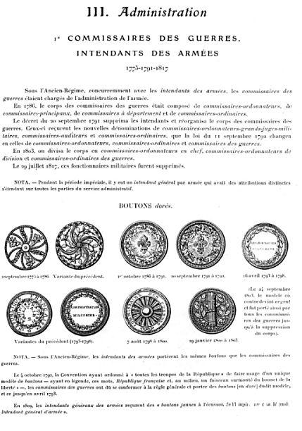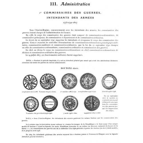 Подробный каталог форменных пуговиц Франции с 1789 по 1914 годы. Особенно большое внимание уделено пуговицам времен Империи Наполеона Бонапарта. Представлено около 4000 пуговиц, некоторые из которых на четырех цветных страницах.
