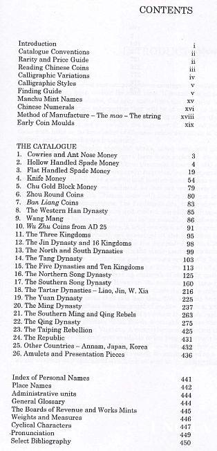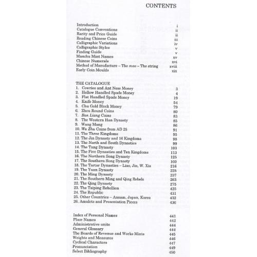 Наиболее полный, из доступных, каталог литых монет Китая на английском языке. Подробно рассмотрены типы и разновидности монет всех форм с 6 в.до н.э.по 20 век н.э. Детальная хронология государств, династий, правителей, восстаний и т.д. Наглядно проиллюстрированы стили написания иероглифов. Академическая шкала определения степени редкости и стоимости монет.