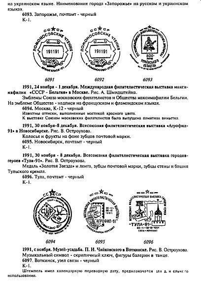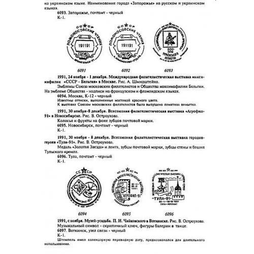 Представленные каталоги, составленные В. Якобсом, охватывают весь период применения в СССР специальных почтовых штемпелей 1922 по 1991 года.