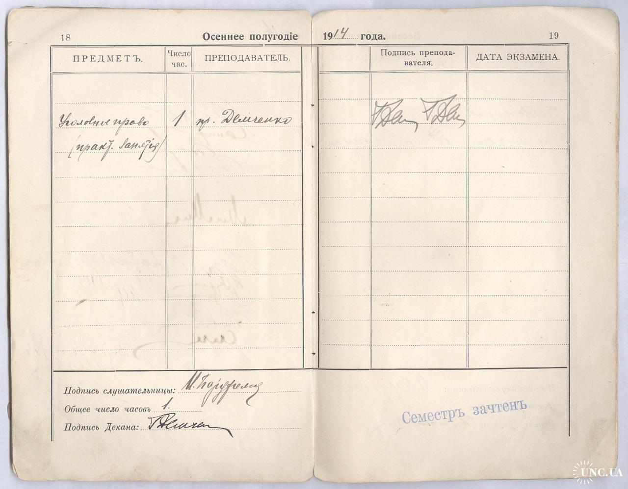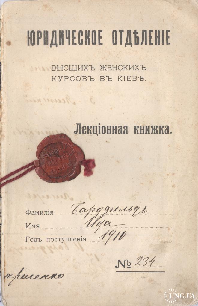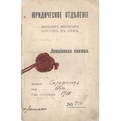 В 1911-1913 гг. — проходил процесс официального признания Киевских курсов университетским учебным заведением, когда, после рассмотрения учебных программ Киевских курсов в министерстве народного образования, их выпускницы были допущены к сдаче государственных экзаменов без каких-либо дополнительных условий.