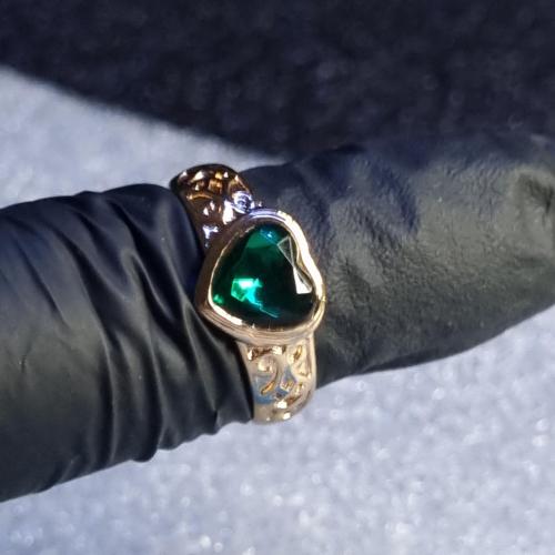 Матеріал - біжутерного сплаву, що імітує золото, з візерунчастим оздобленням обідка, зелений камінь