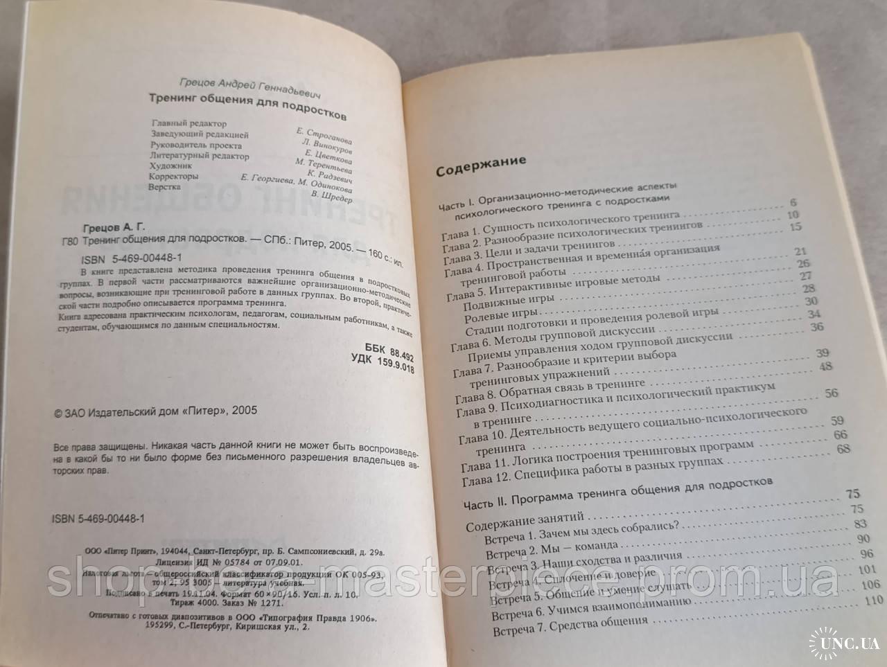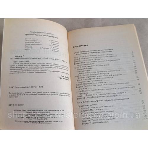 Книга Грецов А. Г. Тренинг общения для подростков. СПб.: Питер, 2005. - 160 с.: ил.мягкая обложка . Стан идеал В книге представлена методика проведение и общения подростковых группах. В первой части рассматриваются важнейшие организационно-методически Попросы, возникающие при тренинговой работе в данных группах. Во второй, практичемкой части подробно описывается программа тренинга. Кинга адресована практическим психологам, педагогам, социальным работникам, в с студентам, обучающимся по данным специальностям.Відповіді продавця на ваші питання