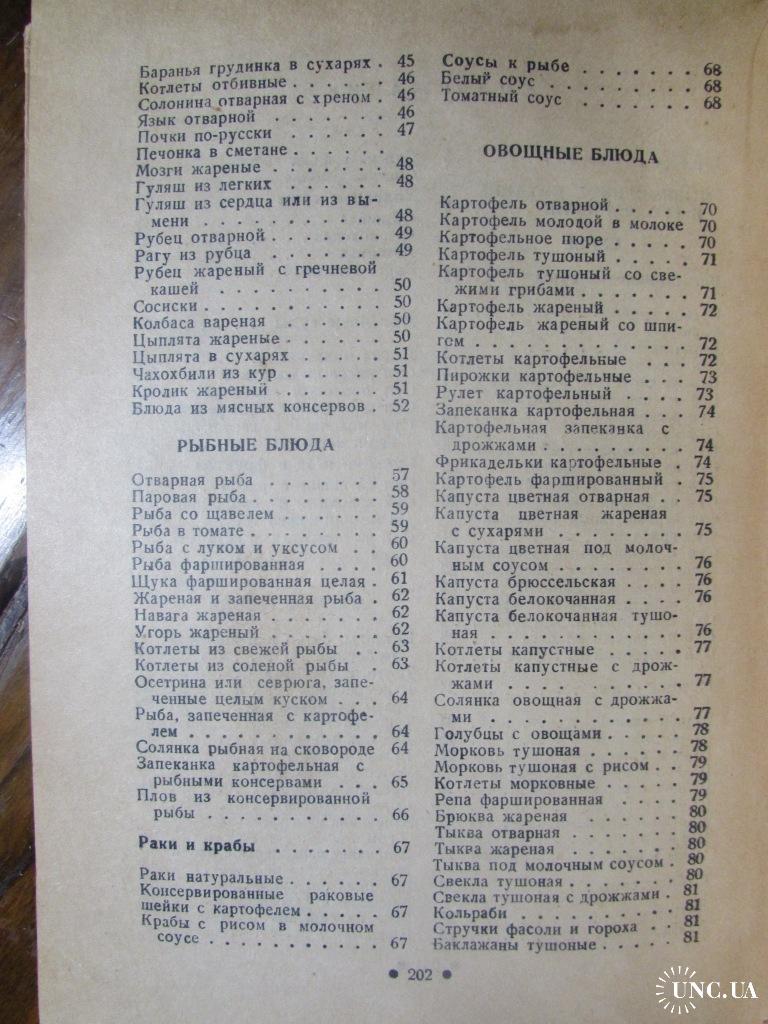 Овощные блюда (в т.ч. «Грибы», «Соусы к овощным блюдам»).