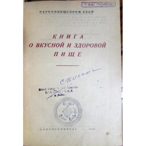 Конечно, в издании 1945 года «КНИГИ О ВКУСНОЙ И ЗДОРОВОЙ ПИЩЕ» рецепты и дополнительная информация о продуктах были подобраны с учётом тяжёлого положения в стране в первое послевоенное время и скромных возможностей потребителей. Авторы пытались рассказать как можно приготовить вкусные (а главное - полезные) блюда из недорогих продуктов. В книге рассказано об основах рационального питания, изложены сведения о пищевых товарах, производимых тогда в СССР. Крометого, именно в издании 1945 года впервые в "КНИГЕ О ВКУСНОЙ И ЗДОРОВОЙ ПИЩЕ» появились разделы о лечебном питании, о питании детей и питании женщин в период беременности и кормления.