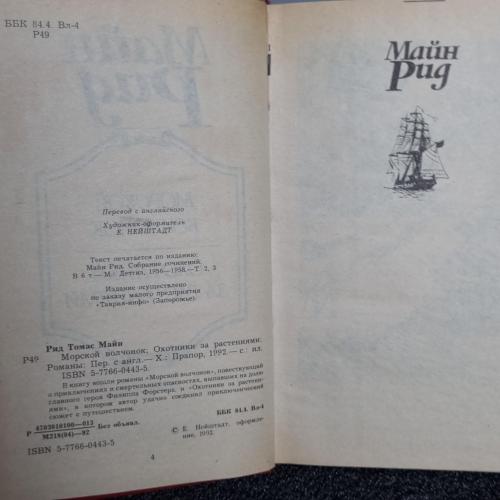 Книга Роман «Морський вовченя; Мисливці за рослинами:»(Майн Рід) 1992