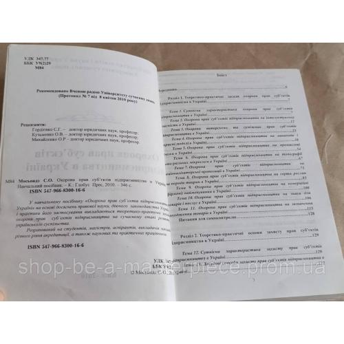 книга С. О. МОСЬОНДЗ Охорона прав суб'єктів підприємництва в Україні Навчальний посібник М'яка обкладинка . Стан добрий 2010 р. 346 стрВідповіді продавця на ваші питання