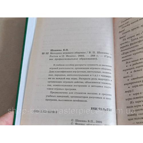 Книга Шашина В.П. Методика игрового общения Есть в продаже ещё книги по психологии Шашина В.П. Методика игрового общения / В. П. Шашина - Ростов н/Д: Феникс, 2005. — 288 с. Твердая обложка. Состояние идеалВідповіді продавця на ваші питання