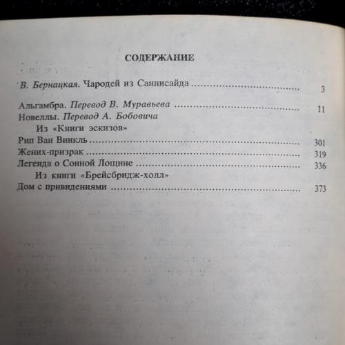 - Сюжет: Вашингтон Ірвінг (1783—1859) — один із перших американських письменників, що здобули визнання в Європі. У це видання включено книгу «Альгамбра», а також його найкращі новели — «Ріп Ван Вінкль», «Дружина», «Дім з привидами» та ін. Новели Ірвінга овіяні романтизмом, а їхні персонажі та характери цілком реалістичні.