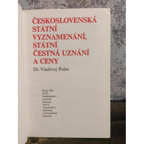 1961-1980Kniha Československá státní vyznamenání, státní čestná uznání a ceny od Vladivoje Pulce, vydaná roku 1980 nakladatelstvím SNTL/ALFA, poskytuje komplexní přehled (183 stran) tehdejších i historických (1918–1965) ocenění. Obsahuje popisy, vyobrazení insignií, stužek a předpisy o jejich nošení.