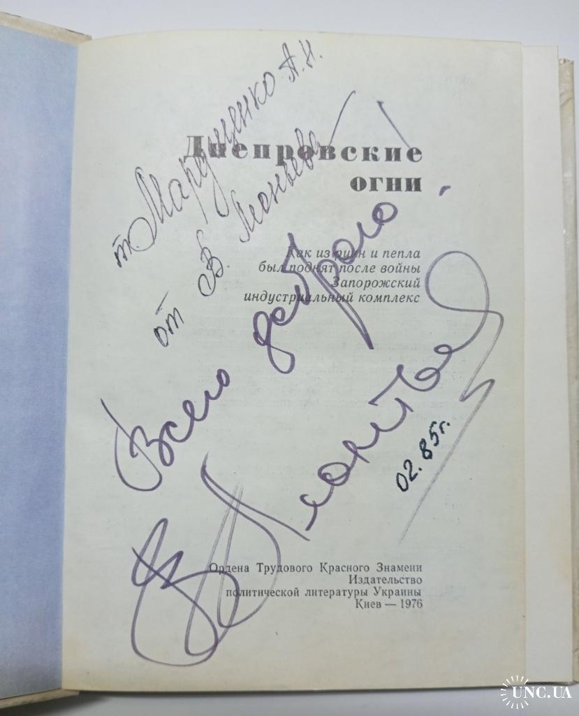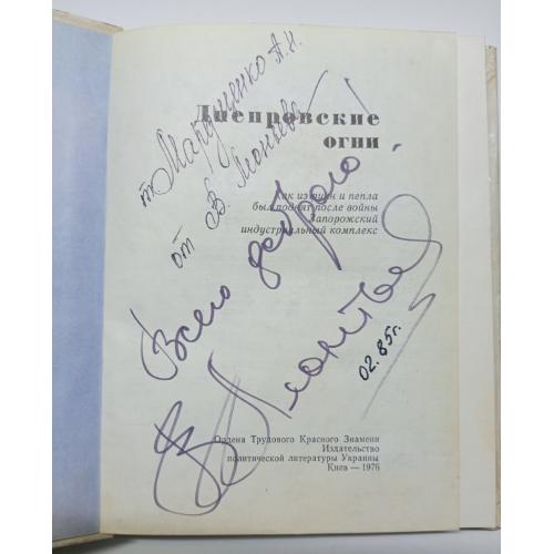 Книга "Днипровские огни" з автографом співака Валерія Леонтьєва. Підпис оригінальний, нанесений у лютому 1985 року