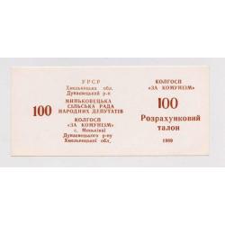 Розрахунковий талон 100 = 1989 р. - ОРИГІНАЛ