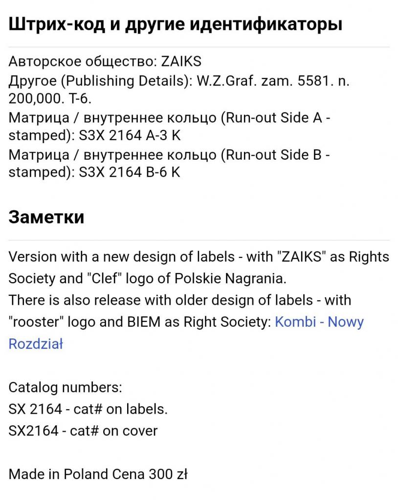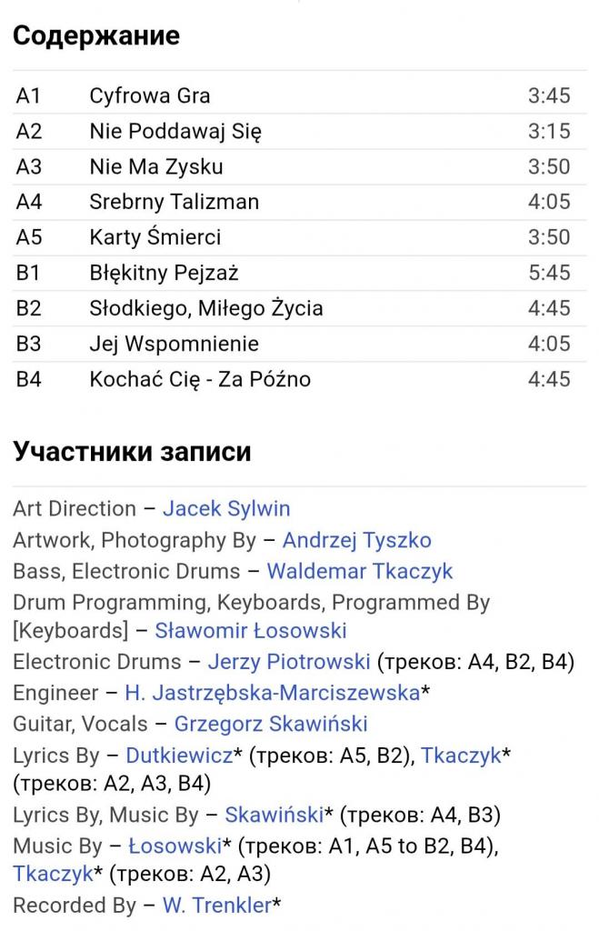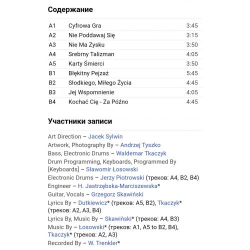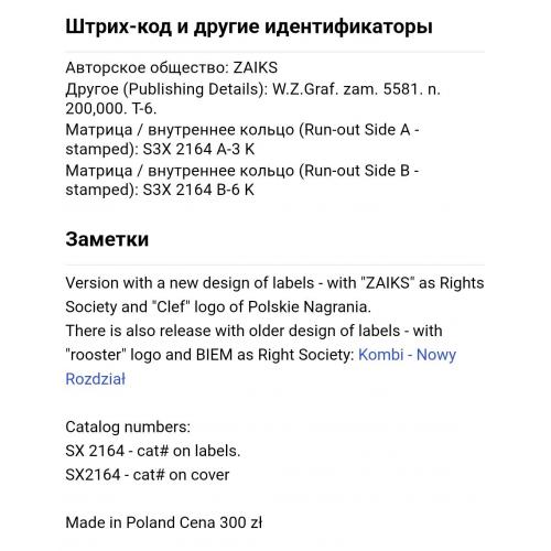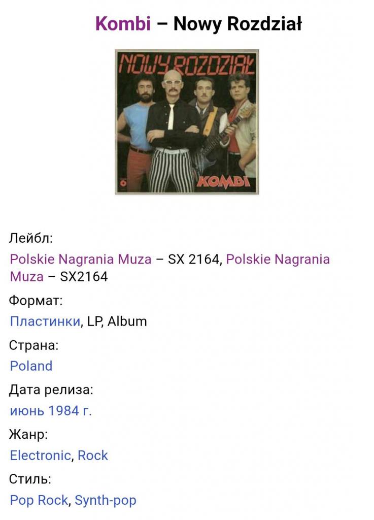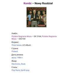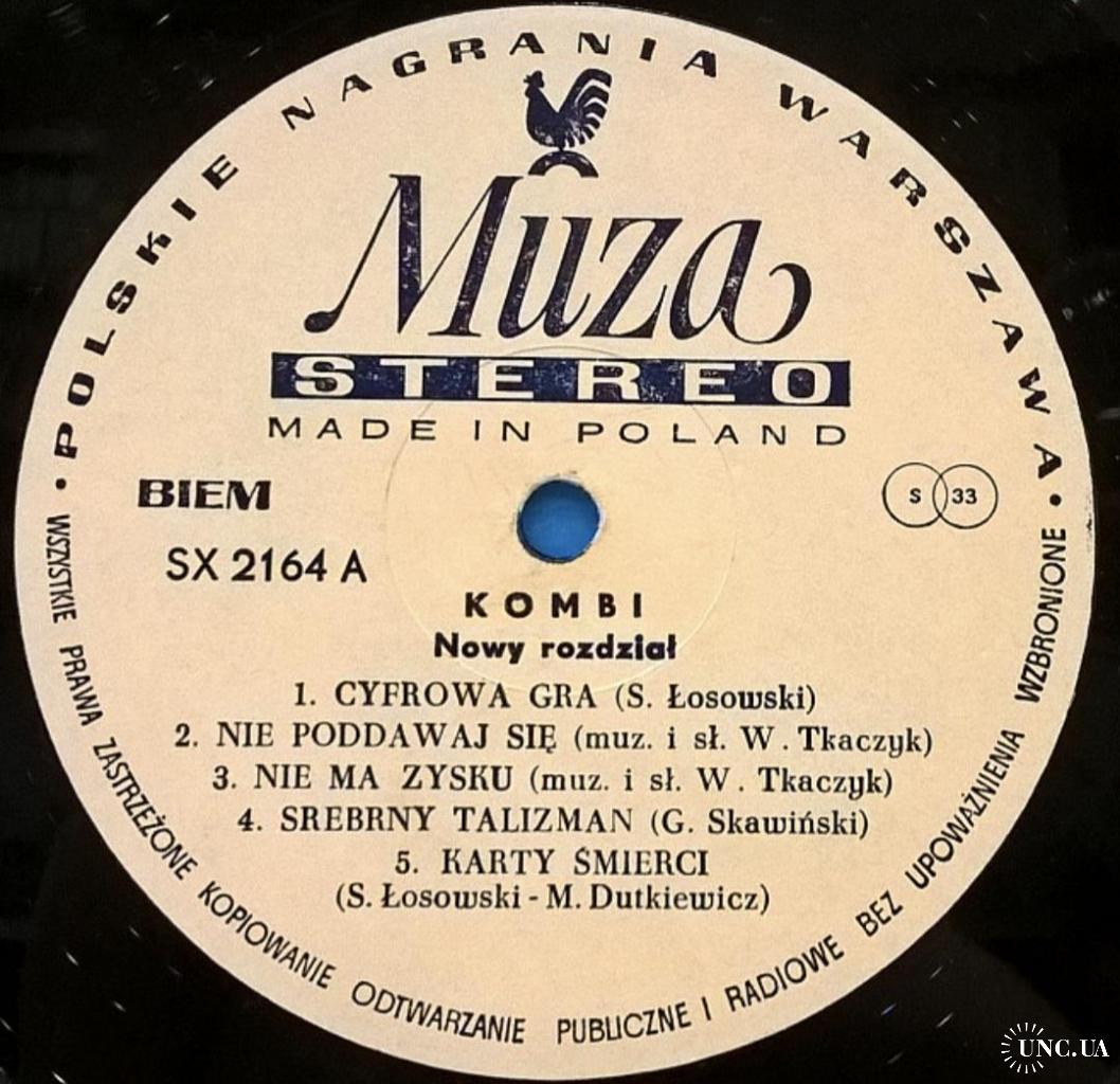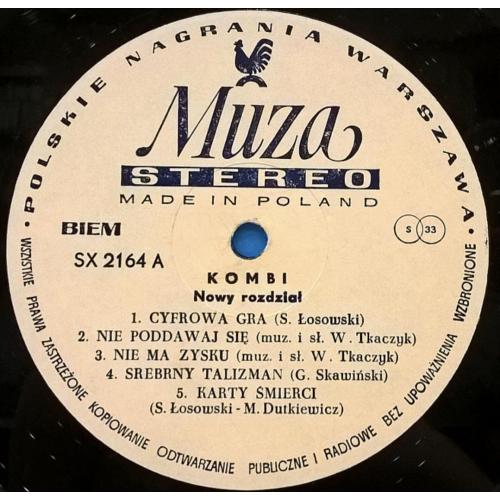 Вінілова платівка. Третій, в дискографії, студійний альбом, Польської фанк-рок, прог-рок, поп-рок, джаз-рок групи Kombi, до складу якої, на той час, входили Славомір Лосовскі, Грегорс Скавінскі, Валдемар Ткачук, Єрзі Пріотровскі та Яшек Сілвін (Nowy Rozdzial) 1984. Випуск фірми (Polskie Nagrania Muza) Poland, 1984-ий рік. Оригінальне, першопресове, рідне, Польське видання. Рідкісне (Rare). Стан платівки EX-. Стан конверту EX+. Відправка по Україні службами доставки: Нова Пошта, Укр Пошта, Делівері. Також відправляємо посилки за кордон по цілому світу.