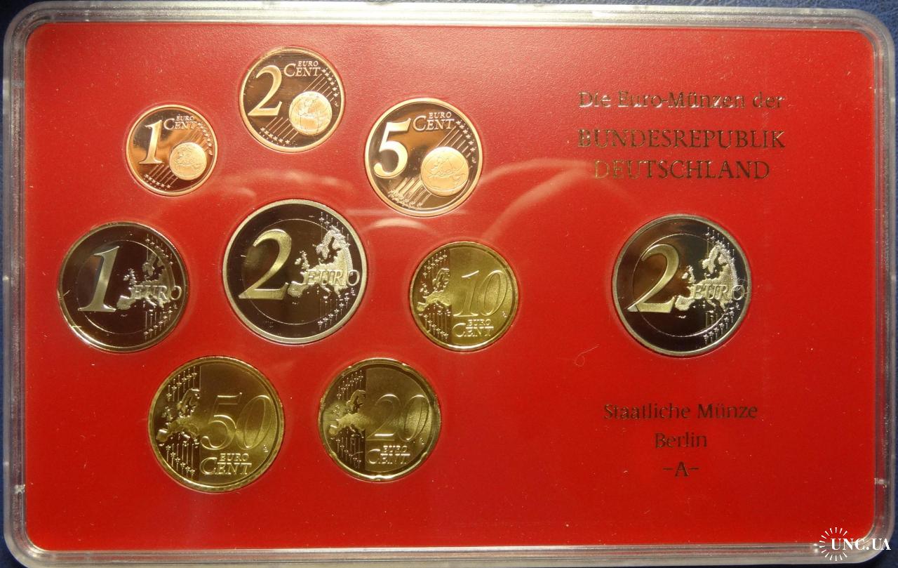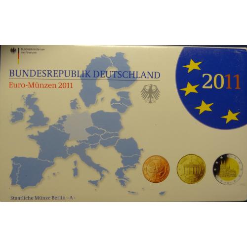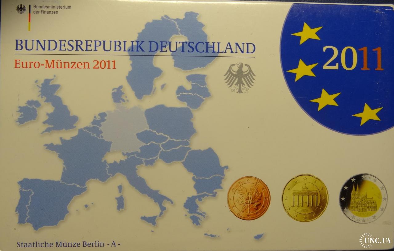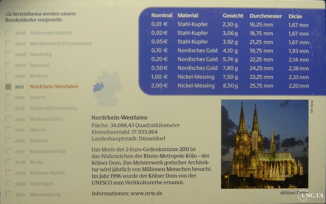 Complete euro-set of Germany 2011 A + 2 euro Nordrhein-Westfalen (Berlin mint) UNC / Повний комплект обігових євромонет Німеччини 2011 A + ювілейна монета 2 євро (монетний двір Берлін) UNC