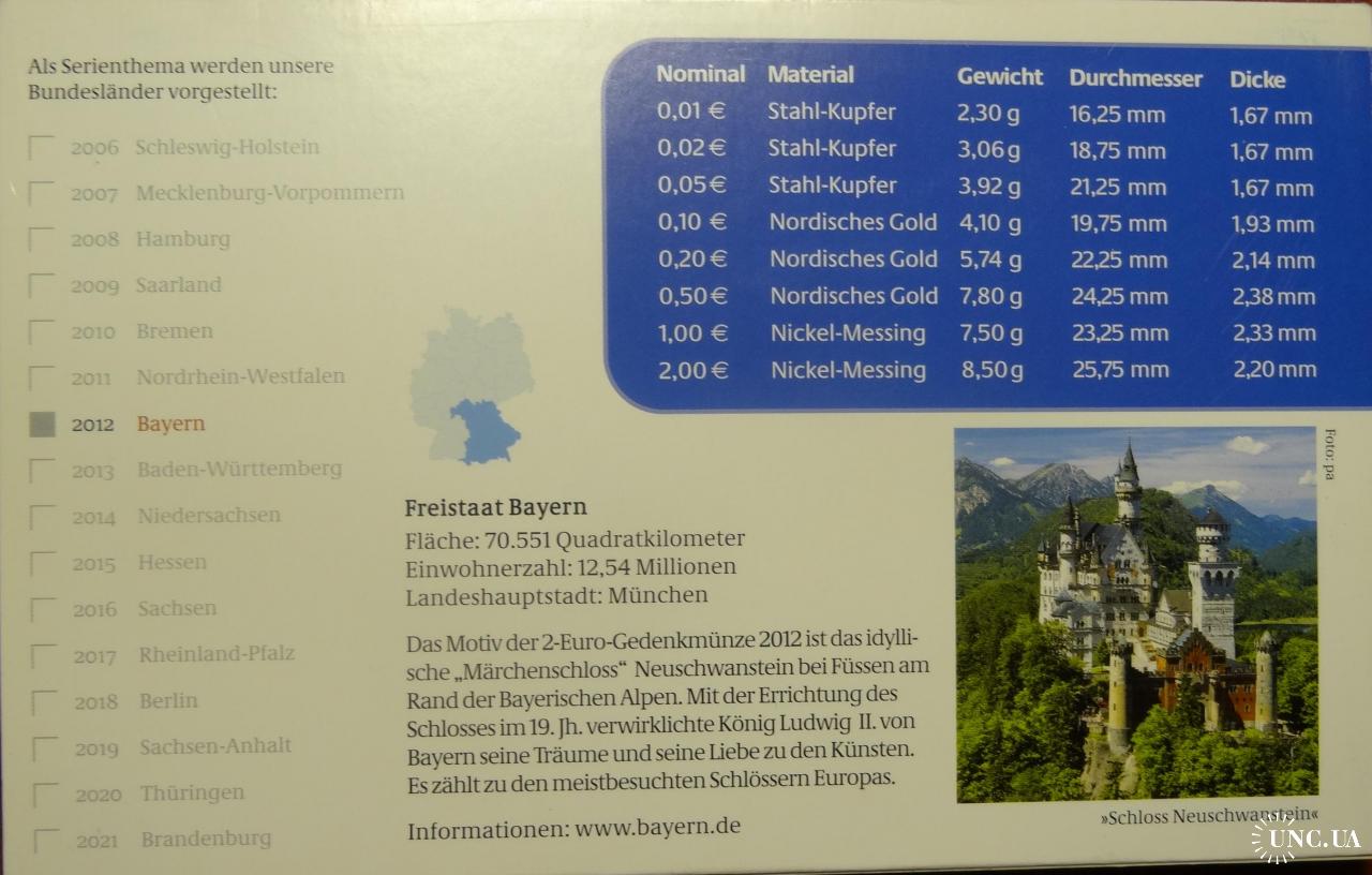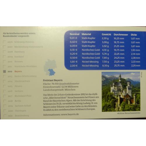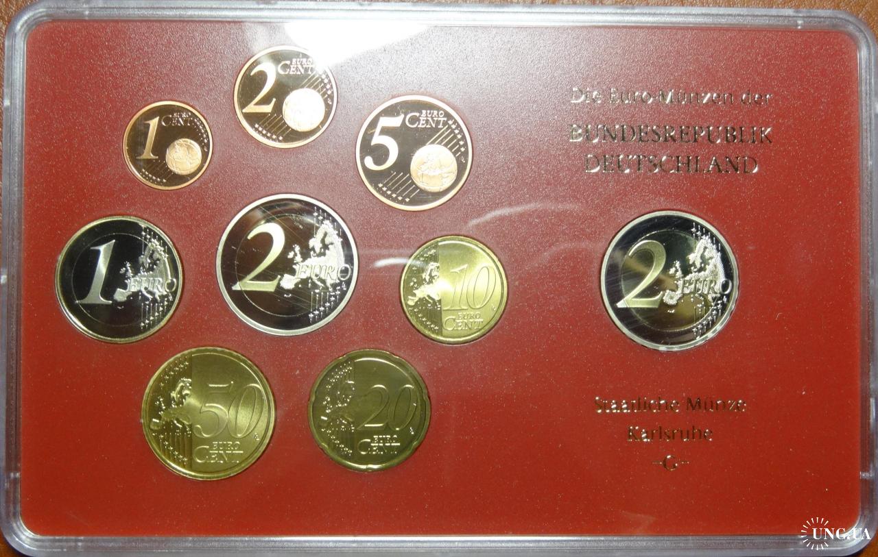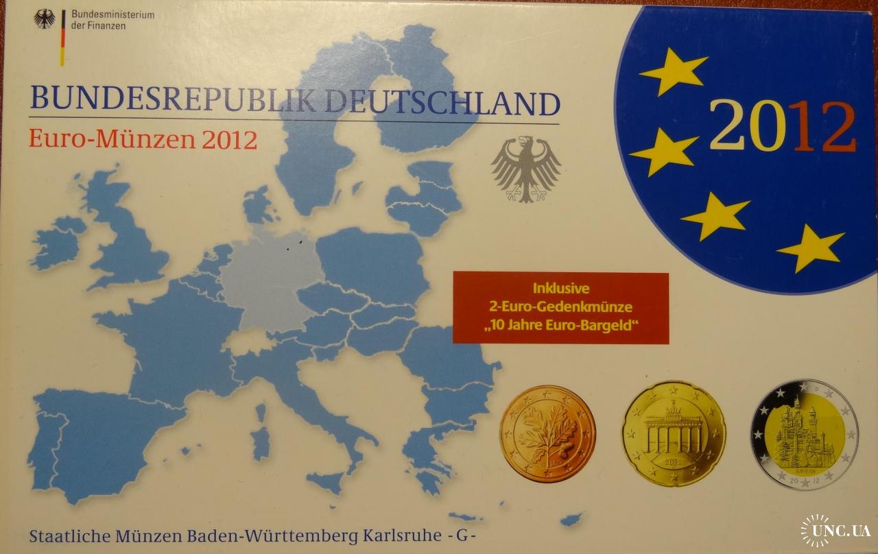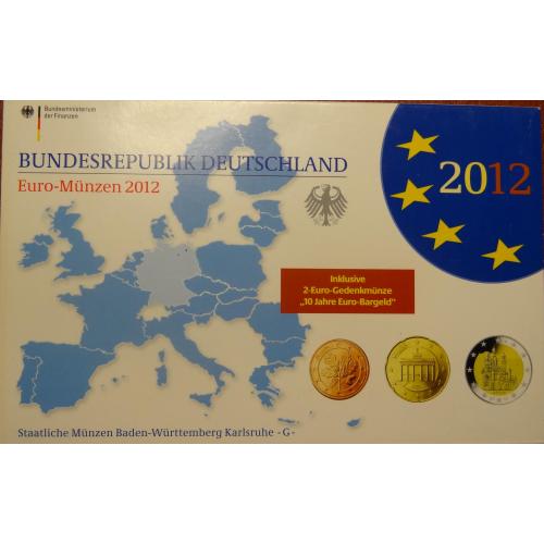 Complete euro-set of Germany 2012 G + 2 commemorative coins (Karlsruhe mint) UNC / Повний комплект обігових євромонет Німеччини 2012 G + 2 ювілейні монети 2 євро (монетний двір Карлсруе) UNC
