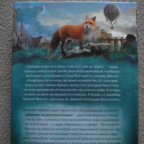 Впервые на русском языке - рассказы Корнелии Функе о том, что случилось в другом волшебном мире, вышедшем из-под ее пера, - в мире `Чернильного сердца` и двух последующих книг всемирно известной трилогии. Впрочем, почему же `в другом`? Сама писательница считает иначе. Джон Бесшабашный бесследно исчез, оставив сыновей, Джекоба и Уилла, гадать, что с ним произошло. Только год спустя Джекоб нашел ключ к этой тайне: записку, вложенную в одну из отцовских книг. `Зеркало откроется лишь тому, кто себя не видит`, - говорилось там. Разгадав эту загадку, Джекоб нашел дорогу в мир, где живет волшебство. Нет такой сказки, доброй или страшной, которая по ту сторону зеркала не имела бы воплощения. Этот мир Джекоб полюбил куда больше родного. Он сделался там охотником за волшебными сокровищами, стяжал славу и пережил немало удивительного. Но однажды вслед за ним сквозь зеркало шагнул его младший брат Уилл, не подозревавший об опасностях, которые сулит волшебство. .