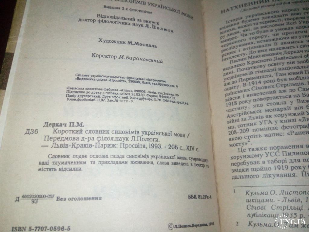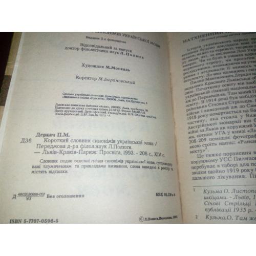 Короткий словник синонімів української мови.