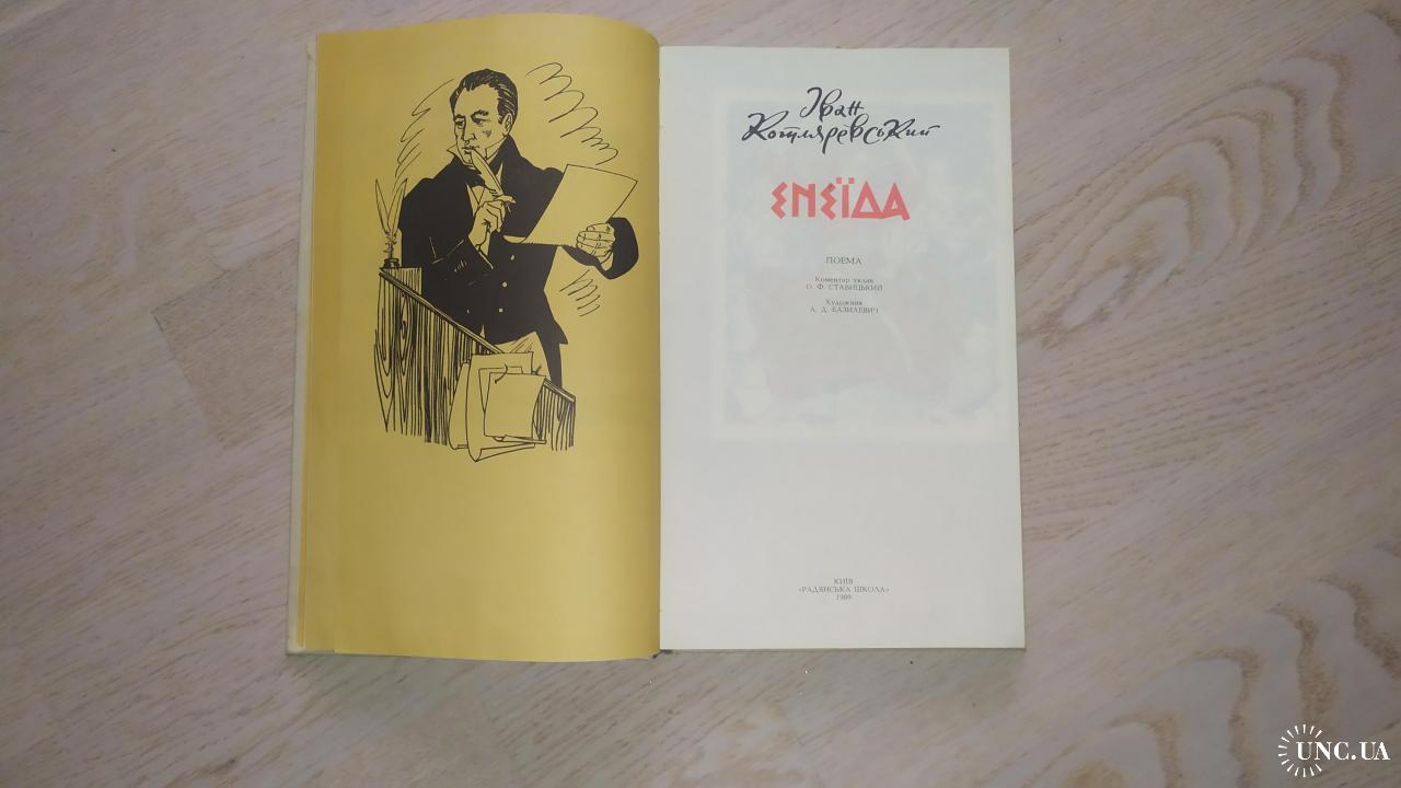 Котляревський Іван. Енеїда. Поема. Ілюстрації та портрет художника А. Базилевича. Київ. Радянська школа. 1989г. 286с., іл. Палiтурка : тверда, збільшений формат.