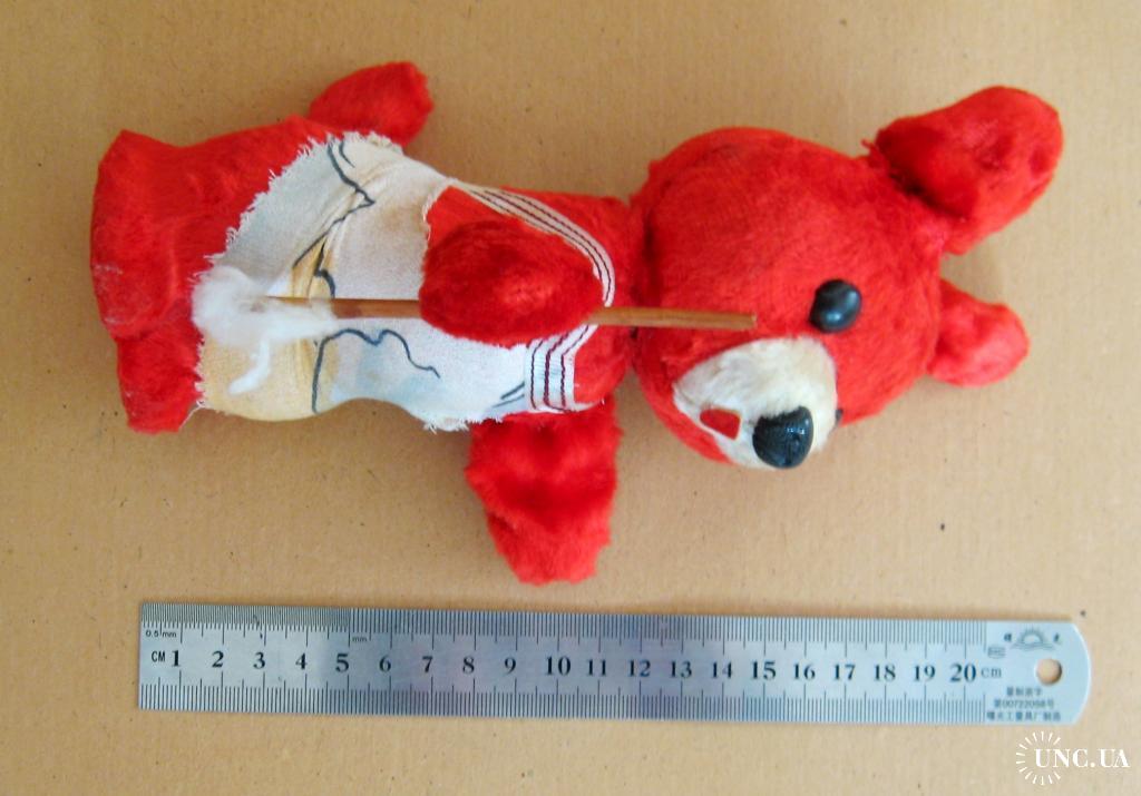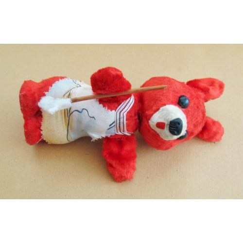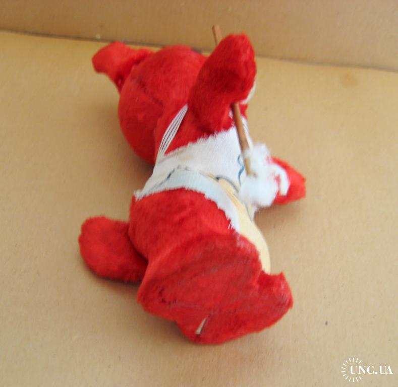 Туловище и голова - опилки. Голова на пружине. Уши, руки, хвост - металлическая проволока.