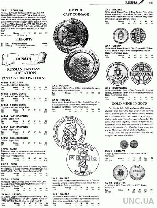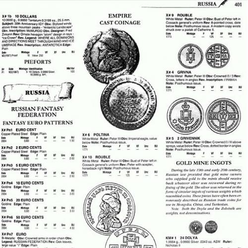 Каталог нeoбычныx монет мира, выпускаемый издательством «Krause Publications», включающий монеты непризнанных, выдуманных и т. п. государств, а также неофициальные выпуски реальных стран мира.