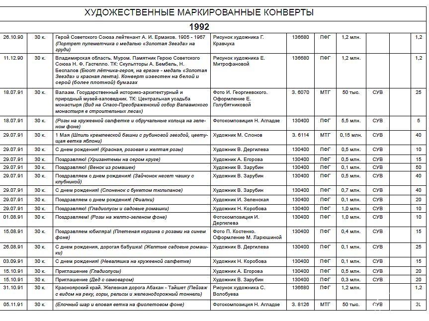 В каталогах приведены цветные иллюстрации всех описываемых конвертов.