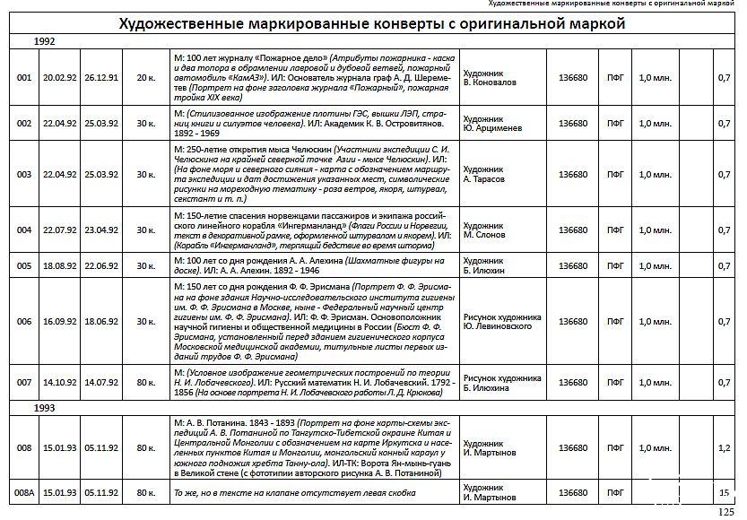 Каталоги содержат описание и оценку ХМК России со стандартной маркой выпуска 1992-2015 гг.