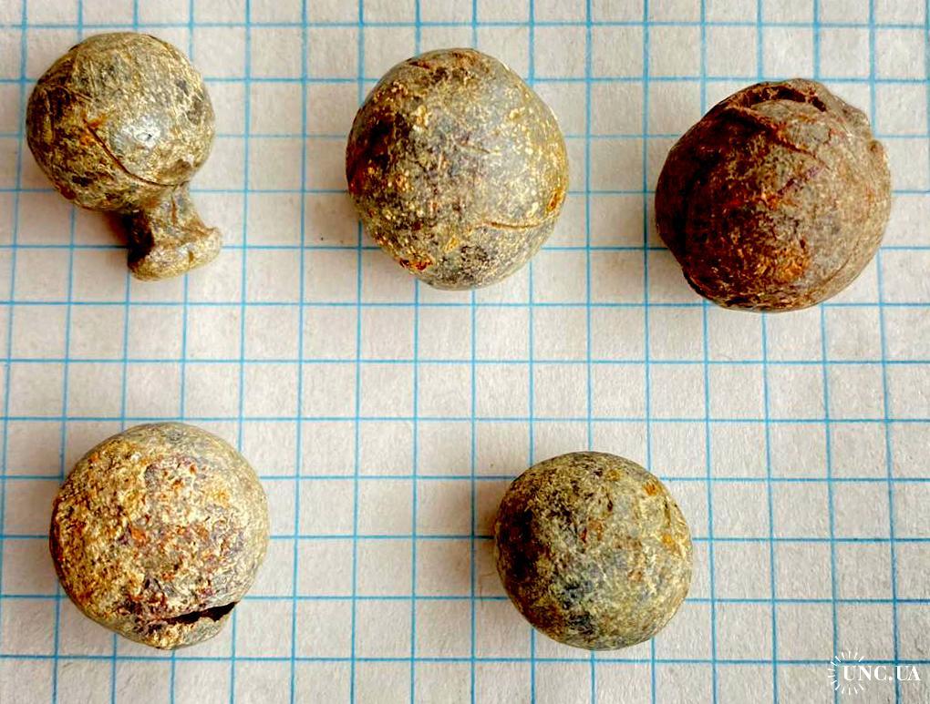 Декілька куль одним лотом. Копане, вимите мильним розчином. Період ймовірно 17-18 ст.