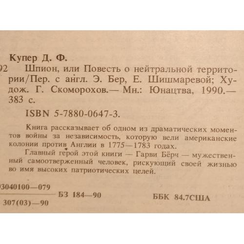 Купер. Шпион, или повесть о нейтральной территории.