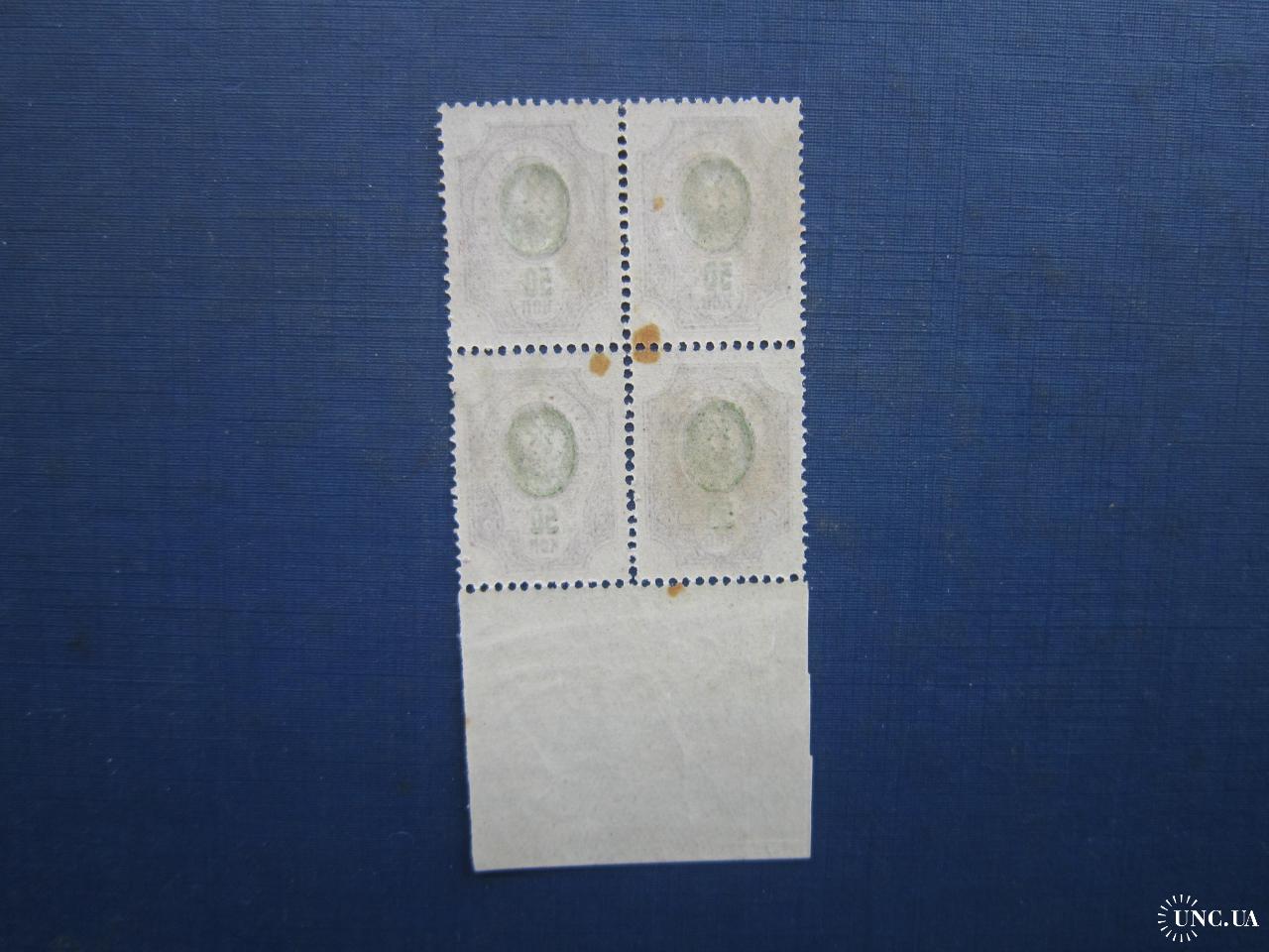 Квартблок 4 марки Україна УНР 1918 наддрук тризуб на 50 коп із зубцями Поділля MNH плями