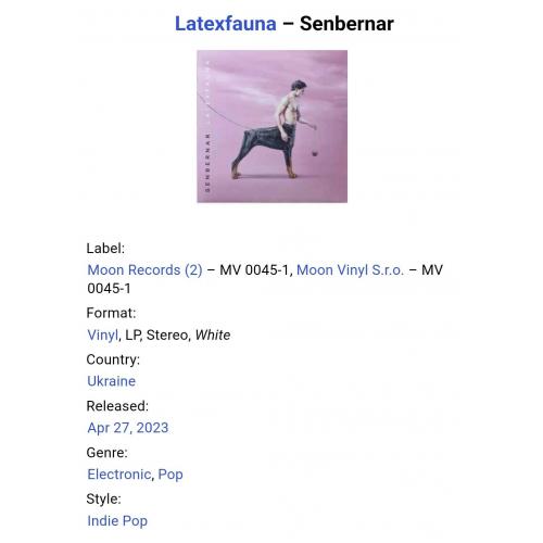 Вінілова платівка. Другий, в дискографії, студійний альбом Української групи жанру чилвейв Latexfauna, учасниками якої були на той час Дмитро Зезюлін, Ілля Случанко, Олександр Булюк, Олександр Мильніков, Максим Гребінь та Костянтин Левицький (Senbernar) 2022. Випуск фірми (Moon Records) Ukraine, 2023-ій рік. Білий вініл (White Vinyl). Лімітований тираж (Limited Edition). Видання нове, запаковане. Категорія S/S. Відправка по Україні службами доставки: Нова Пошта, Укр Пошта, Делівері. Також відправляємо посилки за кордон по цілому світу.