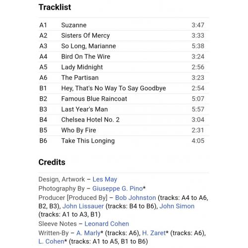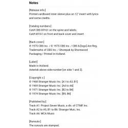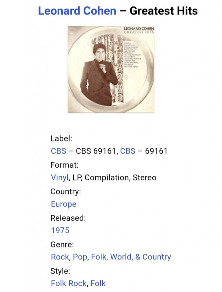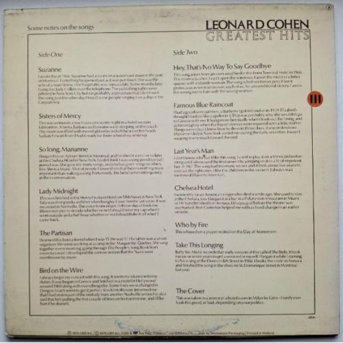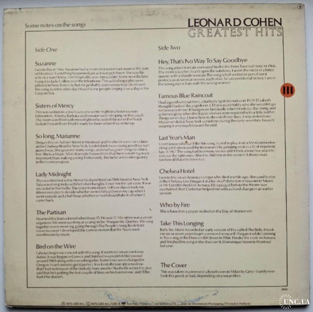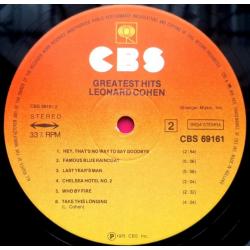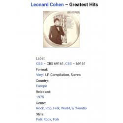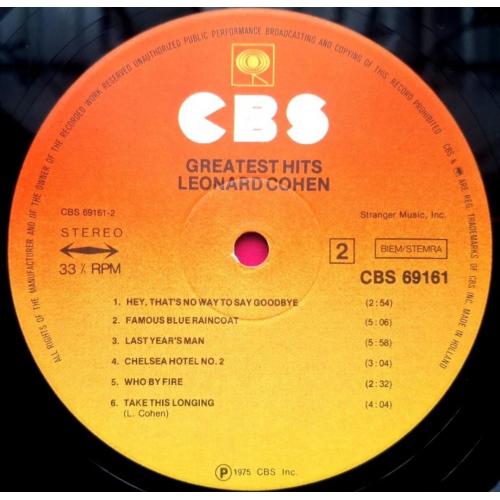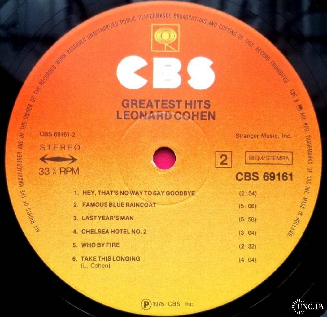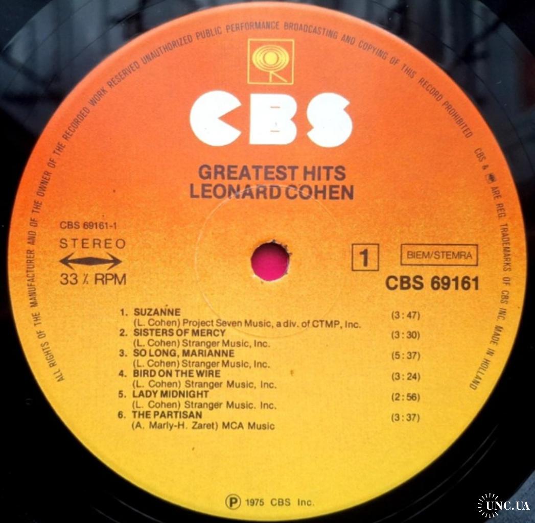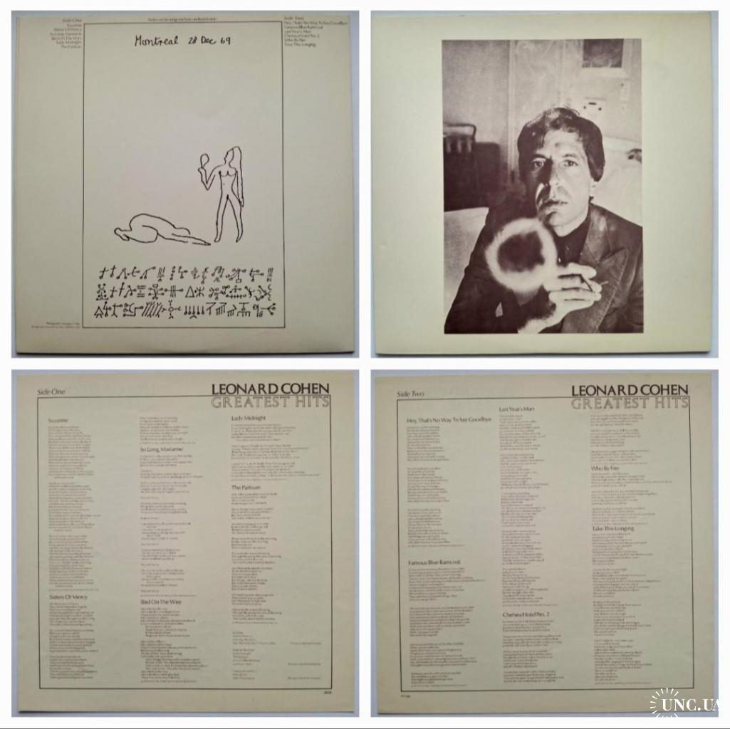 Вінілова платівка. Офіційна, студійна збірка найкращих хітів, легендарного Канадсько-Американського блюз, фольк-рок виконавця, володаря титулів зали слави піснярів, зали слави рок-н-ролу, премії генерала-губернатора виконавських мистецтв, премії принцеси Австрійської в галузі літератури, музичної зали слави Канади, премії Джуно, премії Греммі, Канадської алеї слави, покійного вже, Леонарда Коена (Greatest Hits) 1968-74. Випуск фірми (CBS) Holland, 1975-ий рік. Оригінальне першопресове Голландське видання (1st Press). Стан платівки NM. Стан конверту ЕХ+. В комплекті внутрішні вставки (OIS). Відправка по Україні службами доставки: Нова Пошта, Укр Пошта, Делівері. Також відправляємо посилки за кордон по цілому світу.