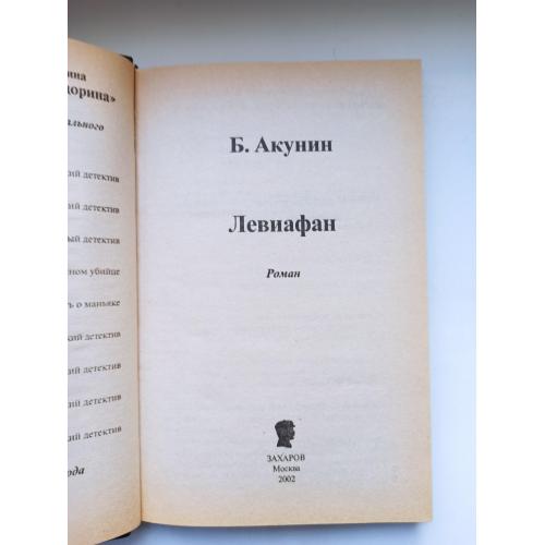 "Левиафан" - это третий роман из серии "Приключения Эраста Фандорина". Расследование зверского убийства приводит парижского комиссара полиции на корабль "Левиафан", который совершает плавание в Индию.