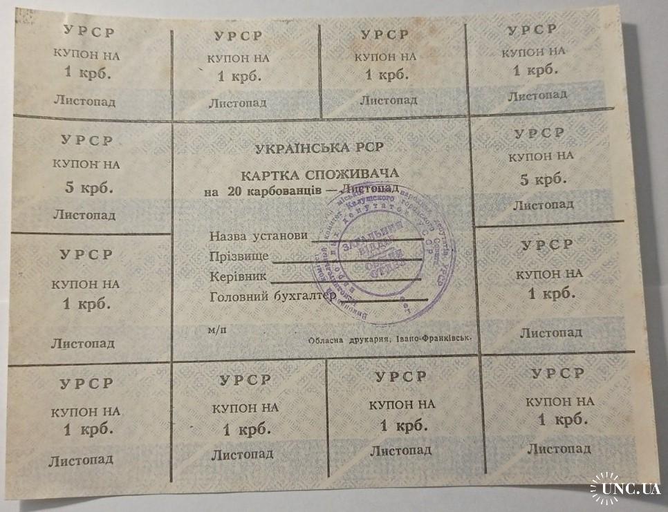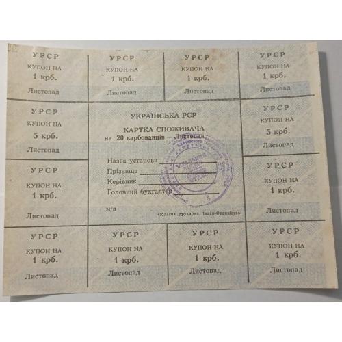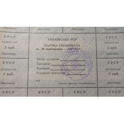 Лист купонів. Картка споживача. Карточка потребителей. Лист купонов. 20.