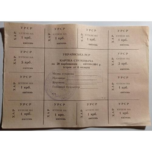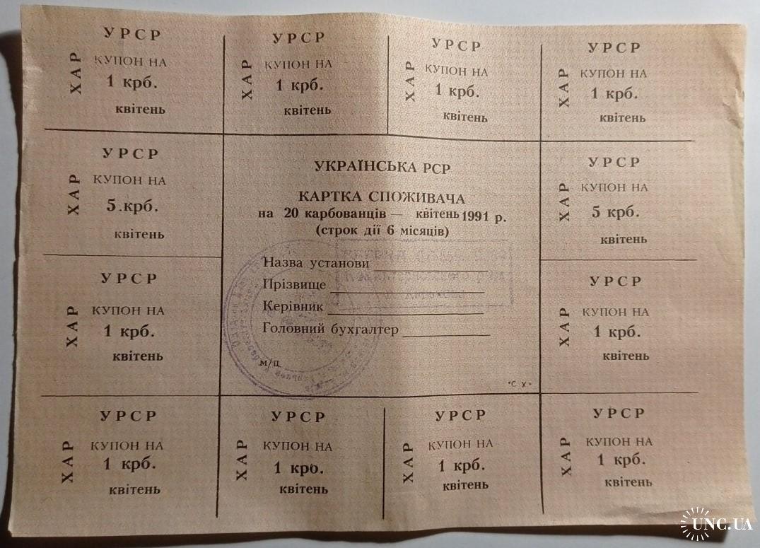 Лист купонів. Картка споживача. Карточка потребителей. Лист купонов. 20.