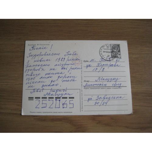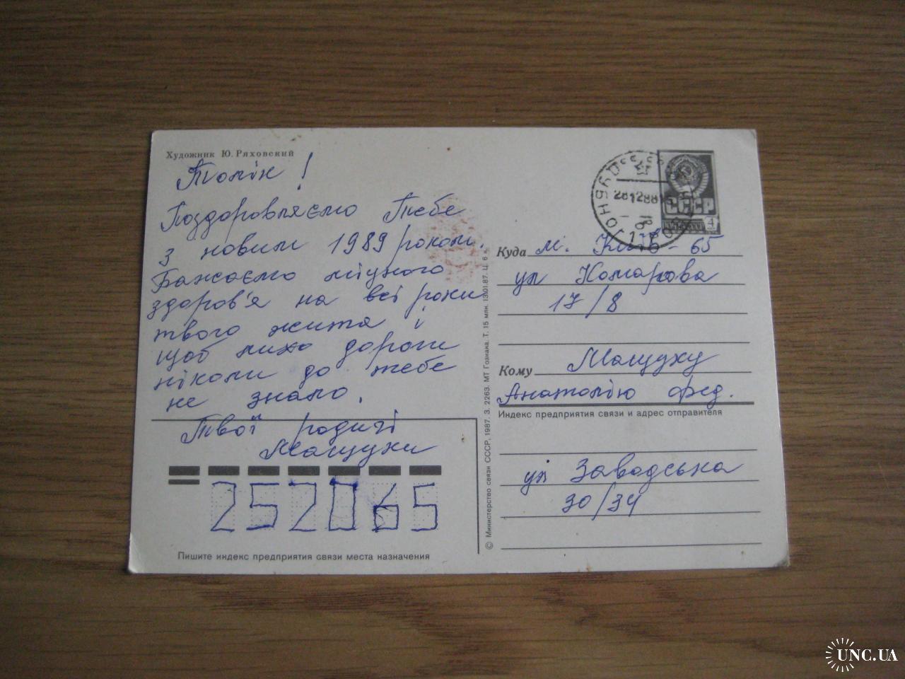 №4943. Оригінальна листівка, вид-во Міністерства зв'язку СРСР, худ.Б.Ряховський З Новим роком! 1987 рік. Стан прошу оцінювати по фото. Пересилка - Укрпошта, Нова пошта. Для киян можливість зустрічі та перегляду (неділя метро Нивки). В РФ и Белоруссию не отправляю!