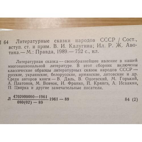 Литературные сказки народов СССР. Издательство: Правда. 1989 г. Состояние блока очень зорошее. У корешка обложки примятости краев и смятость уеллофана вдоль. На фото